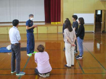「大切な命を守るために」、いざという時に慌てずに適切な救命処置ができるように、実践を交えながら研修を進めました。