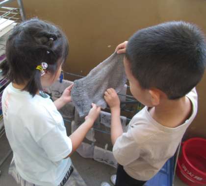 雑巾をきれいにかけたり、スリッパをそろえたりと、すばらしい姿を見つけました。