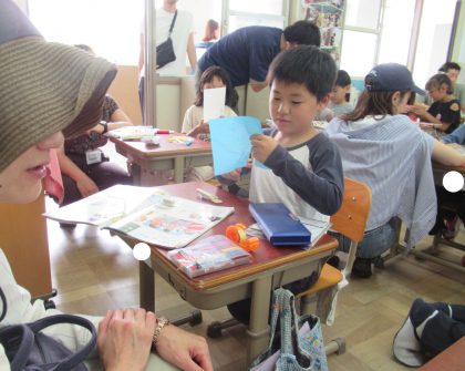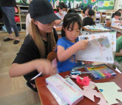 折り紙を使って立体的にしたり、カラーペンでカラフルにしたりして活動していました。