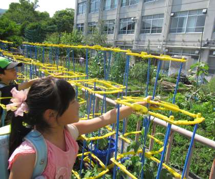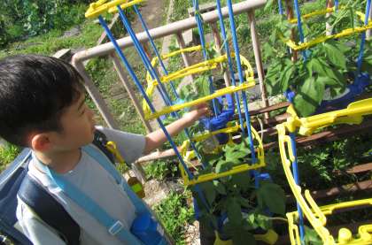 「先生、あさがおがすごく大きくなっているから見に来て!」