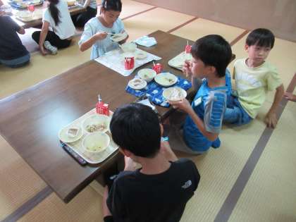 ランチルームで給食も食べました。いつもと違う場所で楽しんで食べることができました。