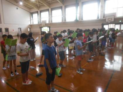 山の家の宿泊学習までいよいよ1週間となりました。今日は学年みんなで山の家でのキャンプファイヤーに向けてダンスや歌の練習をしました。みんなで楽しむということを目標に頑張っていました。天気が心配ですが、当日は楽しく盛り上がりたいと思います。