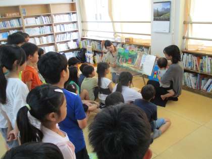 10日、お話宝石箱さんが1・2・3年生を対象に読み聞かせを行ってくださいました。
