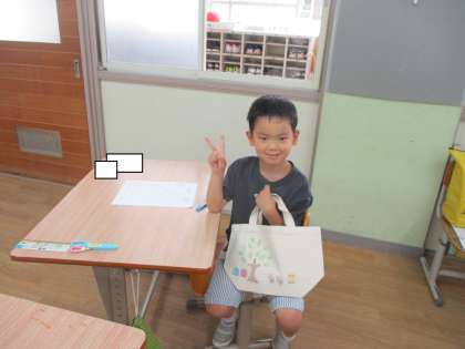 また、先日絵本バックをプレゼントしてもらった1年生は大切そうに活用しています。
