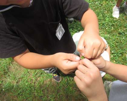 中庭にあった草ですもうをして盛り上がりました。