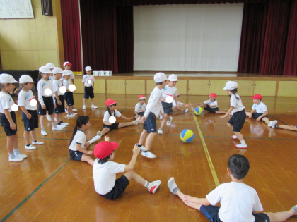 しっぽ取りゲームをしたり、転がしドッジボールをしたりして、全力で楽しみました。