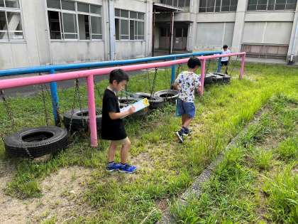 はじめはこん虫のすみかについて、学校にいるこん虫はどんなところにいるか調べました。