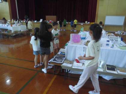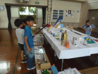 今日の3時間目に夏休みの作品展を体育館に見に行きました。