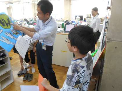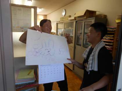 9月のカレンダーが完成しました。職員室・事務室・校長室・給食室・交流学級など、お届けに行きました。希望している場所が重なった時に低学年に譲るなどやさしい高学年の姿がありました。