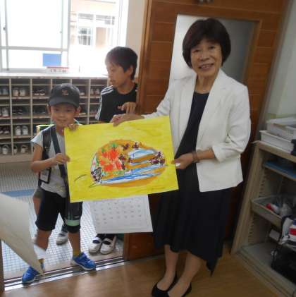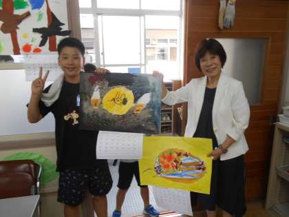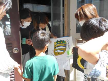 「失礼します。カレンダーを届けに来ました。」「これは、○○を描きました。と、笑顔で話す子どもたちでした。