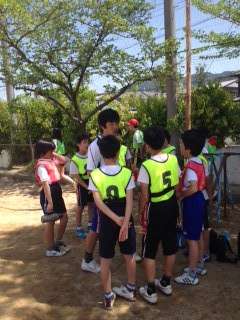 先日,連休の初日に春日野小学校で,4校交流のタグラグビー交歓試合が行われました。