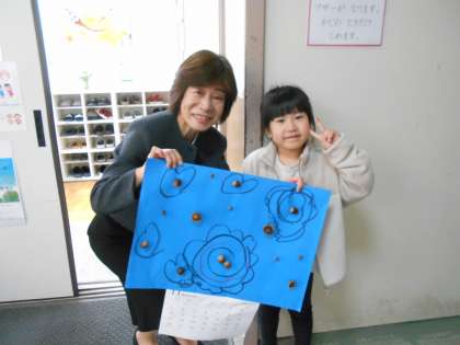 11月のカレンダーが完成しました。11月は、秋が深まる時期です。イチョウやモミジなどを描いている子がたくさんいました。届けたい教室や場所に届けに行きました。届けた日がハロウィンだったので、仮装して届けている子どももいました。