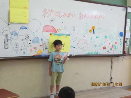 1年1組の友だちが1名転校することになりました。みんなで過ごす最後の日にお別れ会をしました。宝探しゲームやだるまさんがころんだなど楽しく過ごすことができました。最後は、クラスのみんなでトンネルをつくり、見送りました。