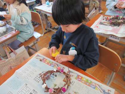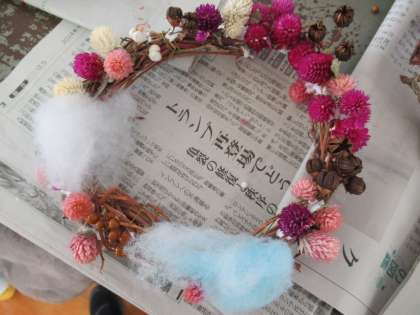 素敵なリースができあがりました。本日持ち帰っていますので、お家に飾ってあげてください。