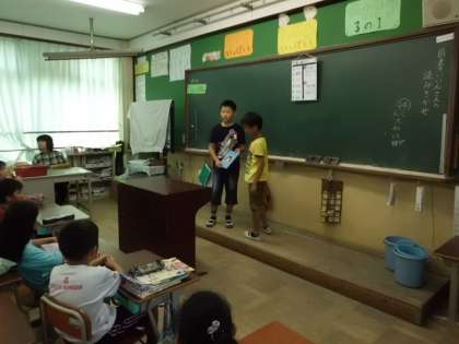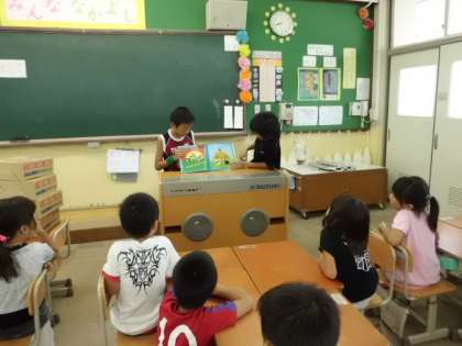 夏休み明けには新刊図書も入り,読書環境も充実してきました。本に対する興味関心を高めるため,低学年に読み聞かせをしています。教職員が担当する場合もありますが,今回は,高学年児童がやってくれました。