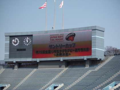 3月8日(土)秩父宮ラグビー場,3月9日(日)国立競技場での「サントリーカップ第10回全国小学生タグラグビー選手権大会」2日間とも,春の日差しが降り注ぐ絶好の天気に恵まれました。