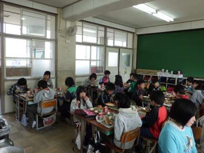 3時間目に体育で一生懸命走ったから,子どもたちはお腹がすいていたようで,しっかりと全部残さず食べました。
