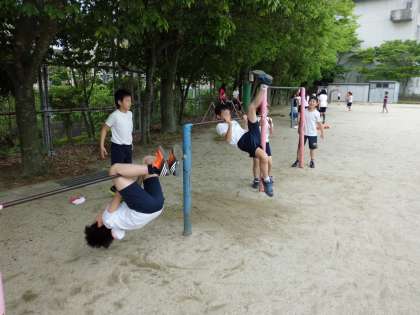 運動場の体育は,鉄棒の学習に入りました。