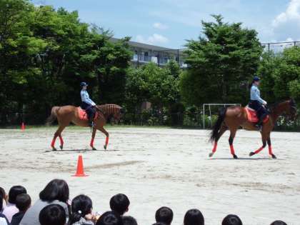 4時間目は平安騎馬隊による安全指導を受け,乗馬演技を鑑賞させていただきました。