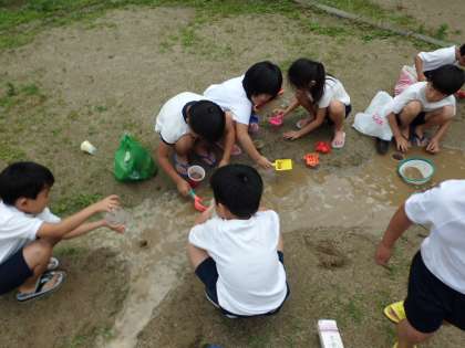 汚れてもいいように体操服の下に水着を着て,用意していた道具を使って準備万端!!