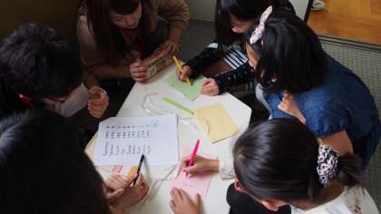 大学生のボランティアさんが優しく教えてくれるので,『英語』