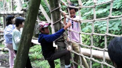 最後の活動は子どもたちが心待ちにしていた冒険の森でのアスレチックです。なかなか難しそうなコースもあるのですが、どんどんみんな先に進んでいきました。コースの最後のターザンロープでは、気持ちよさそうに乗りこなしていました。