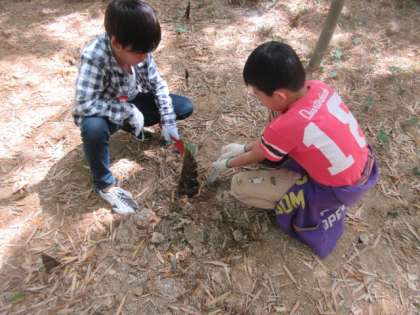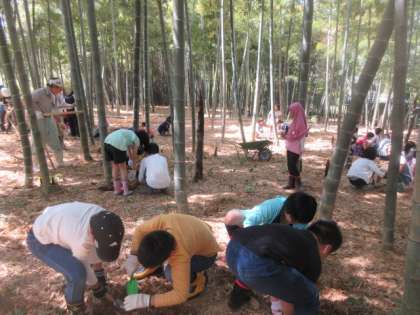 3年生・4年生・あおぞら学級の子どもたちが,地域の方に教えていただき竹の子掘りを体験しました。