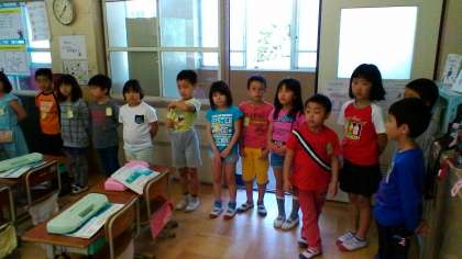音楽の授業が始まると,2年生の子どもたちと一緒にかえるの歌を合唱することもできました。