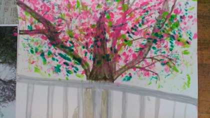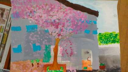 4月から取り組んでいる図工「さくらの木」ができあがりました。