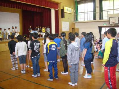 ステージに立ち,全校児童の前で話すのですから,緊張はします。でも,どの学年も自分たちの目標に向かってがんばるんだという意気込みが感じられました。