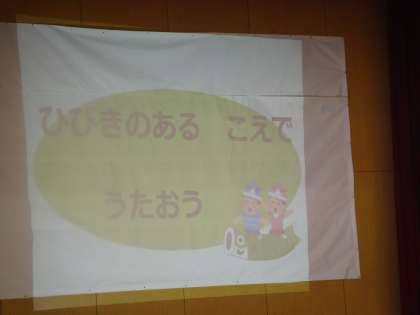 今日は,第1回目です。1年生の子どもたちもしっかりと歌える「校歌」を歌ってみました。ねらいは「ひびきのある歌声で歌おう」です。