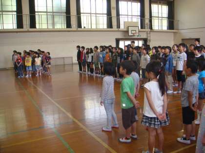 退場は,「グッバイまた明日ね」を歌いながら,クラスごとに退場をしました。こうして,全校で取り組むととても楽しいですね。