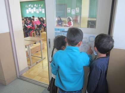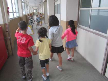 1年生と一緒に学校を探検しました。昨年,2年生の人にしてもらったことを思い出して探検していました。1年生をうまくリードできたと,嬉しさいっぱいの学校探検でしたね。
