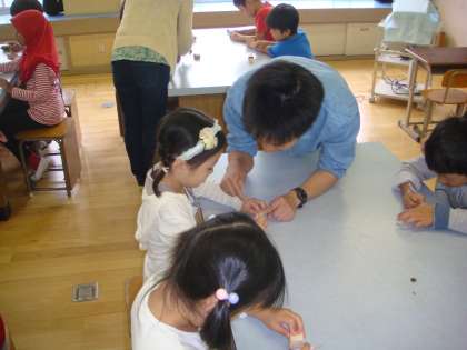 今日は,「はんこをつくろう!」ということで,1年生から6年生の34名が参加をしました。