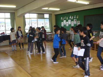 1年生に「ジャンケン貨物列車」の遊びの説明をして誘導の練習もしています。そうそう,修学旅行の旅館でのお楽しみ会で6年生のみなさんが「ジャンケン貨物列車」を楽しんでいましたね。そのことを思い出してみていました。