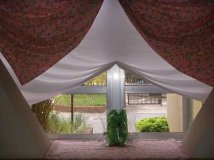 また,廊下にきれいな布で飾られたコーナーがあります。