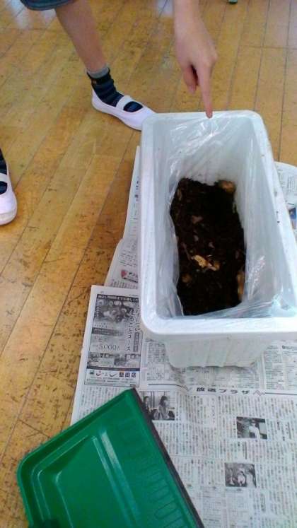 クラスの子たちが家で飼っているカブトムシの幼虫がさなぎになったと聞いたので,クラスで飼っているカブトムシの幼虫の様子を見てみました。