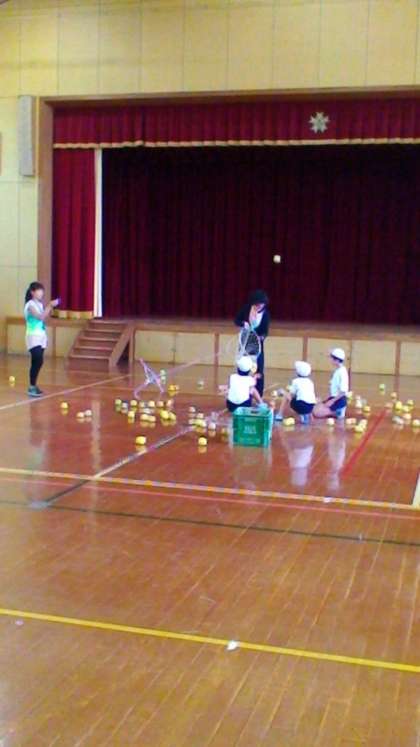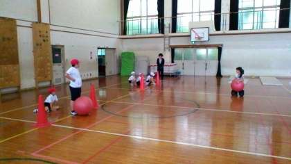 今日は大玉転がし,玉入れなどまるで小さな運動会みたいな活動ができました。