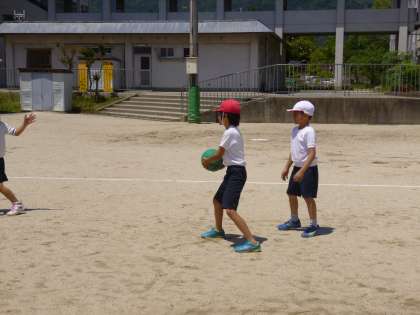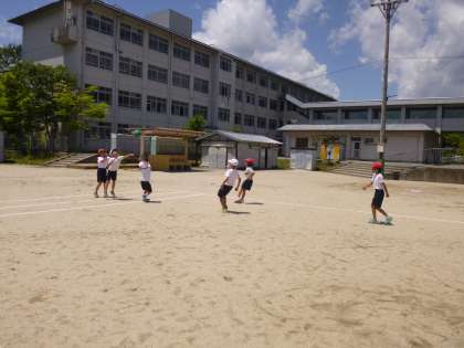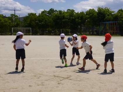 エンドボールの学習に入って2時間目です。ゲームの進め方やルールがわかってきて,得点につなげるためにチームで協力してがんばっています。ゲームを進めていく中で出てきた問題点は,毎時間,学習の終わりにみんなで話し合って解決していきます。それも大切な学習の一つです。