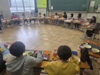 班で仲良く給食の時間を過ごしました。コロナの影響もあり、机を班の形にして給食をと...