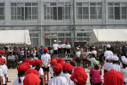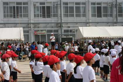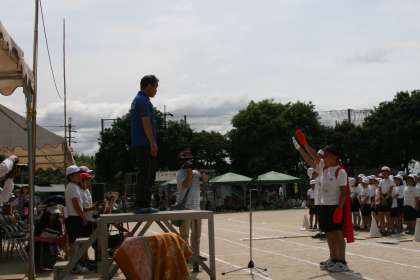 マイクがなくても,運動場でしっかり聞こえる声でした。