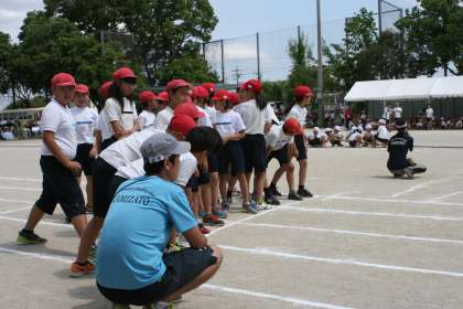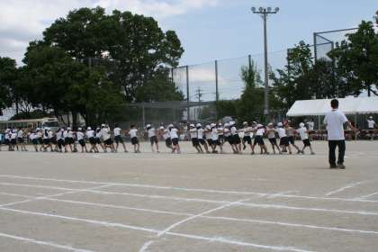 いかに5年生が速く綱にたどりついて引くことができるかが,