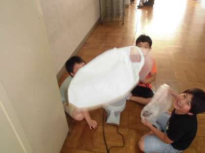 子どもたちが,持ちよったビニール袋を用いて発想豊かな作品を作りました。