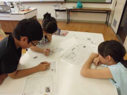 お茶を入れるときに準備するものや,お茶の注ぎ方,水やお茶の葉っぱの量などを学びました。来週には,実際にお茶を入れる予定です。