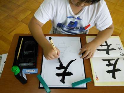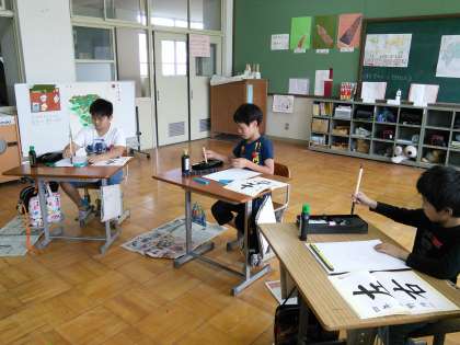 3くみ児童は書写の時間が大好きです。筆運びや墨のつけ具合など,お手本をしっかり見て書いていきます。
