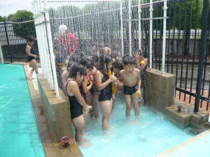梅雨の晴れ間をぬって,1・2年生合同でプールに入りました。