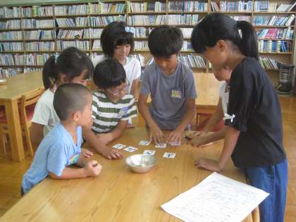 図書室では,「かくれた暗号をさがせ」のゲームです。