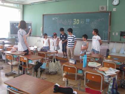 教壇の上にみんなで乗って,30秒たったところでおります。