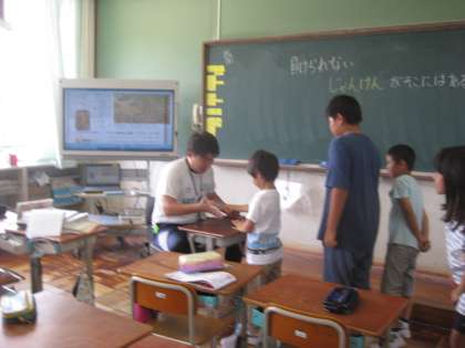 3年1組の教室では「ジェスチャーゲーム」です。
