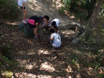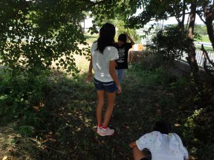 学校の色々な場所に行って土の中にいる動物を探しに行きました。